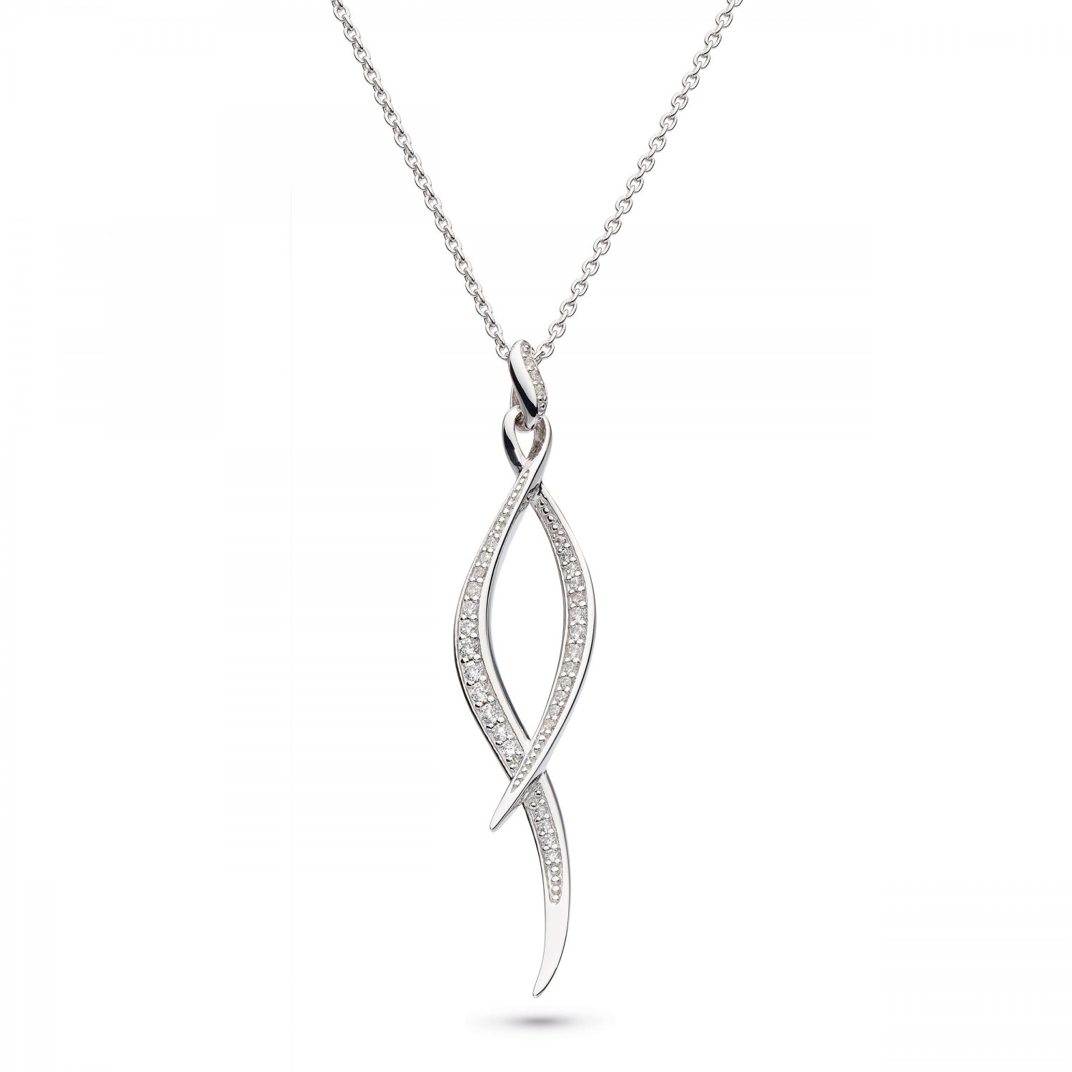 Sleek and simple, the entwine collection exudes an elegance that's hard to match. The added element of cubic zirconia in this design elevates the piece exponentially. This pendant comes on a 20" rhodium plated silver chain.