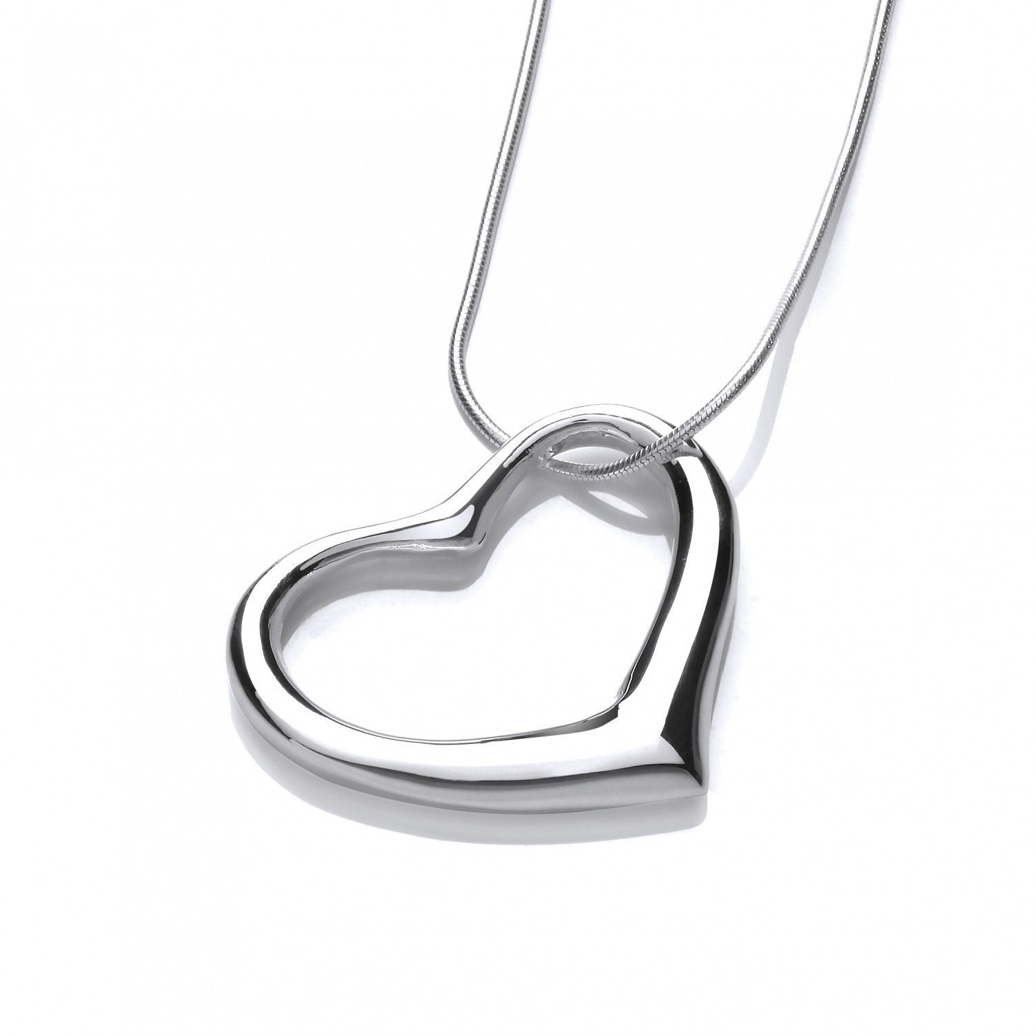Sterling silver offset open heart pendant. This pendant can be purchased on a 16, 18 or 20 inch sterling silver chain.