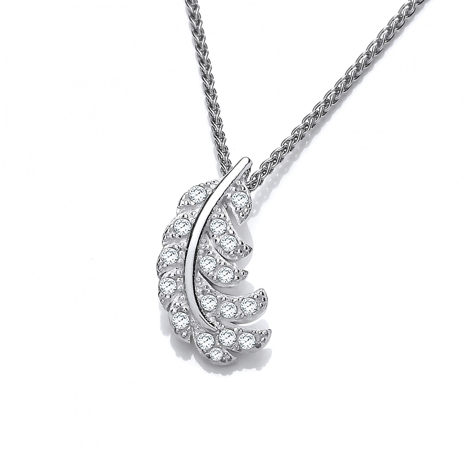 Sterling silver small Cubic Zirconia feather pendant. This pendant can be purchased on a 16, 18 or 20 inch sterling silver chain.- Designer: Carol Anne Collection