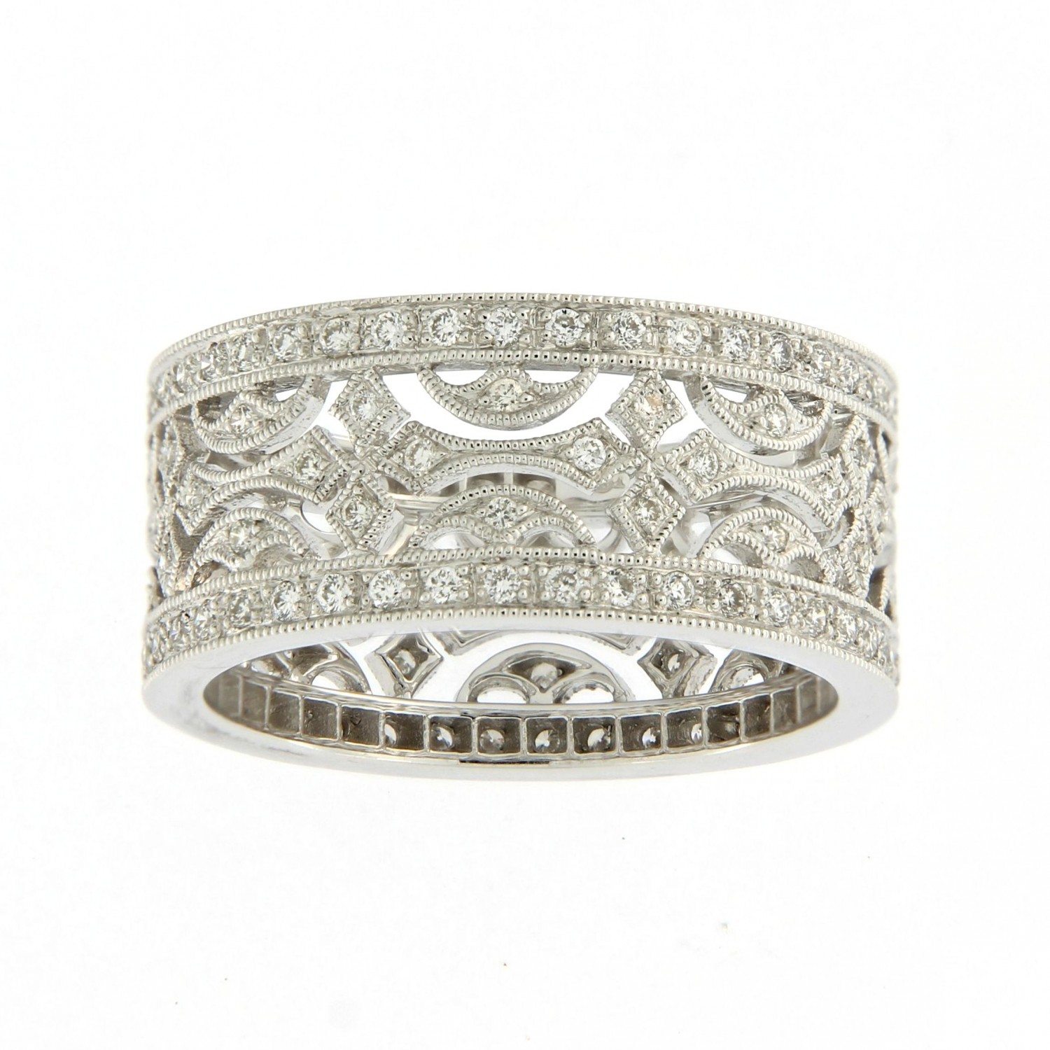 Ungar & Ungar wide diamond set mosaic design ring set with round brilliant cut diamonds.Created for you. Choose your metal and stone quality.