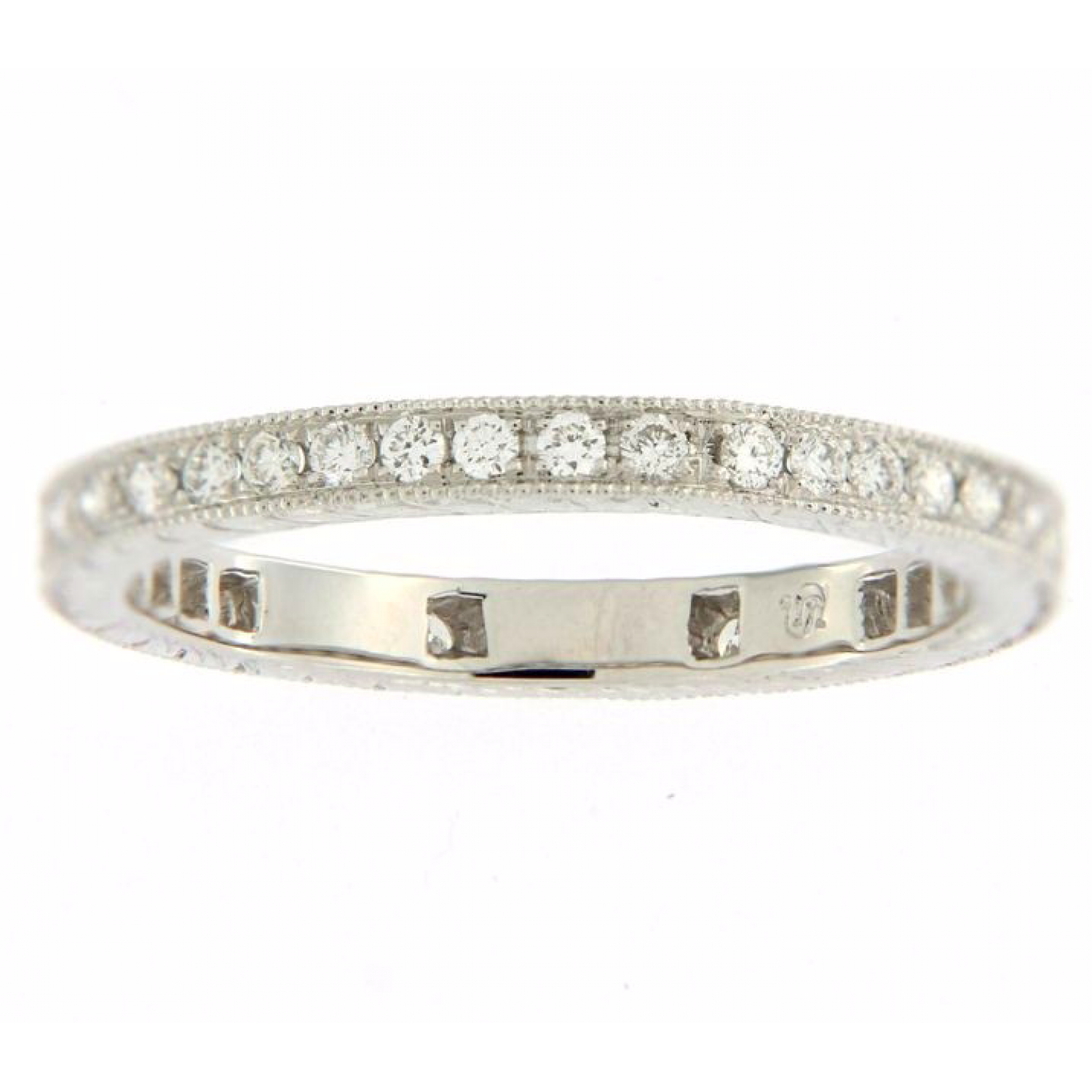 Ungar & Ungar pave set eternity ring, set with round brilliant cut diamonds and milgrain edging.