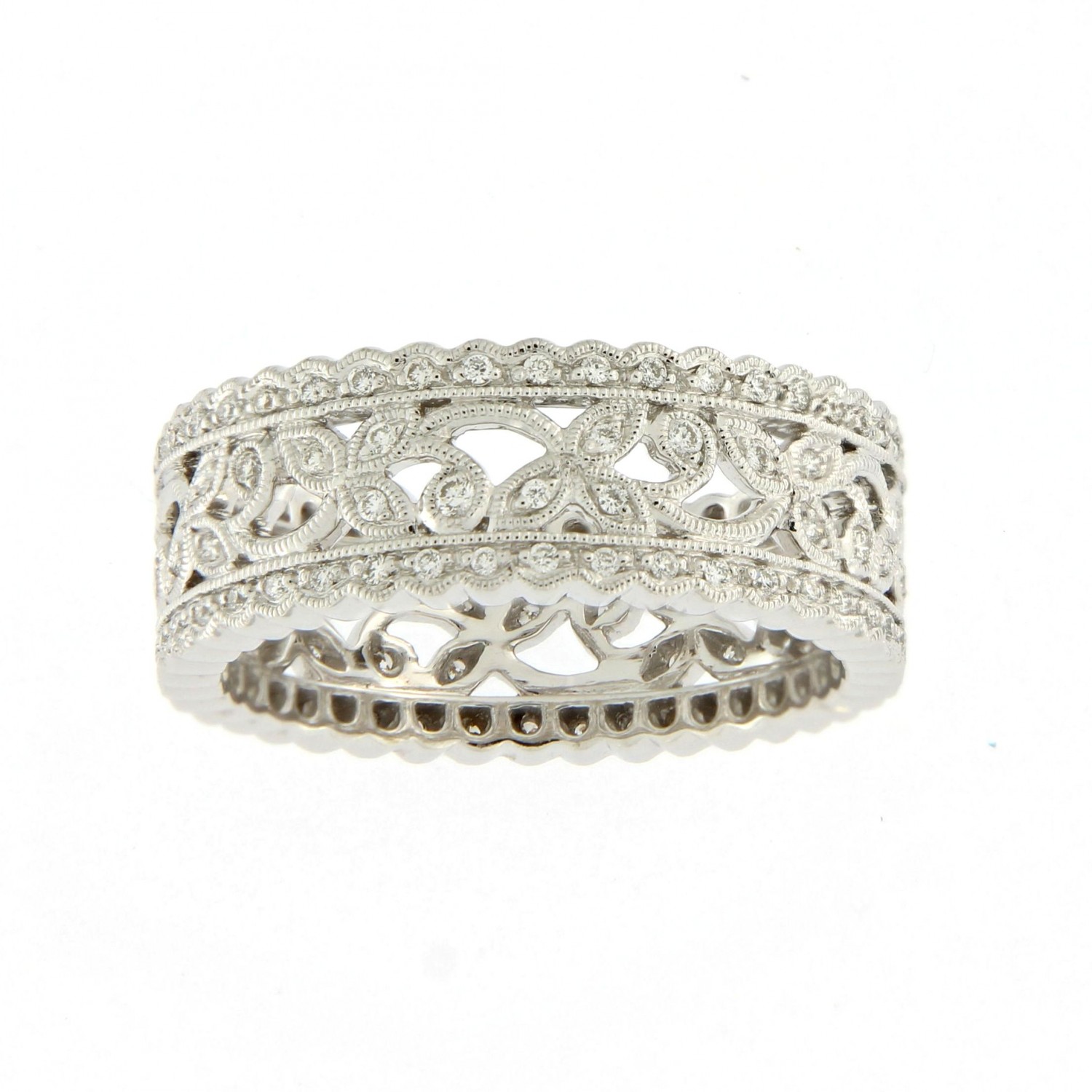 Ungar & Ungar diamond leaf design ring with scalloped edge set with round brilliant cut diamonds.Created for you. Choose your metal and stone quality.