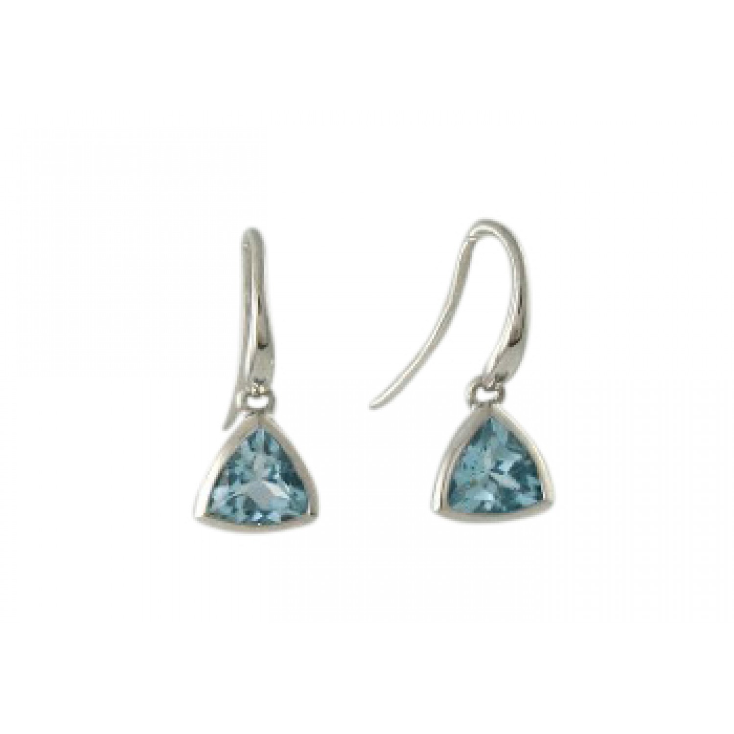 Sterling silver bezel set triangle Blue Topaz drop earrings.